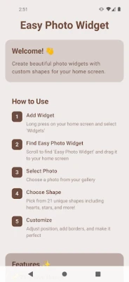 The app offers 21 unique widget shapes, along with customizable borders and colors, giving you full control over your personal aesthetic. With a clean and user‑friendly interface, Easy Photo Widget is perfect for anyone who wants to personalize their device effortlessly.