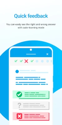 - The app will save your progress automatically and you can resume your quizzes anytime.