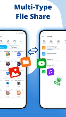 The phone-to-phone transfer feature of Easy Share File Transfer App for Android makes it easy to transfer all your apps, videos, images, music, and documents from your old phone to your new one with just a tap. Plus, you can share files with your friends or family anytime, anywhere, ensuring seamless sharing across devices.