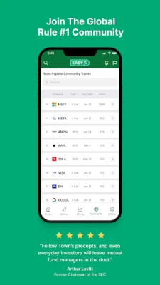 Easy Street makes profitable options trading accessible to everyone using Rule #1 Investing strategies—the same principles developed by Phil Town that have a 20+ year track record of beating the market. The app helps you instantly find stocks that are "on sale" using Rule #1 valuation tools, match them with the highest-probability options trades, and execute clear Rule #1 strategies without overwhelming analysis or confusion.