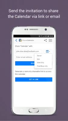 • Share calendar with “View only” and “Free/Busy only” rights using the Free version of app