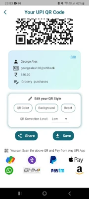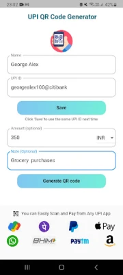 Can Scan Generated QR Code and Pay from any UPI App.