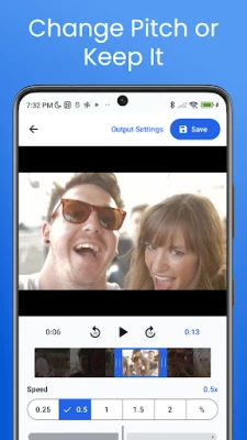 You can select the playback speed from a variety of speeds. You can even flip the video left and right for playback. You can also change the pitch of the sound to match the playback speed, or maintain the pitch.