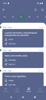 - detail predmetu v rozvrhu