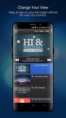 It's time to go mobile and get out of the media booth! Now you can control and view EasyWorship 7 content from any Android mobile device on your network. Whether you need to control or view your church service, you can say, “Goodbye!” to the mouse and say, “Hello!” to freedom. Features: