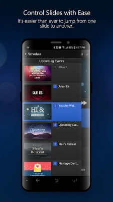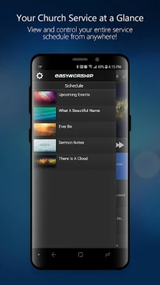 Remote Control - Control EasyWorship by selecting schedule items and going live. Select slides within a song or presentation, or tap the current slide preview to change to the next slide.