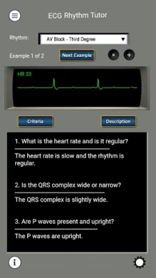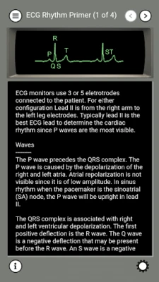 The ECG modules present 80 different electrocardiogram wave forms as they sweep across the screen just like on a real ECG monitor. Recognition of EKG rhythms as the wave forms sweep across a monitor screen is a different skill than diagnosing cardiac rhythms on a static tracing. This app will improve your clinical skills more than reviewing with a book because you will learn to diagnose the EKG rhythms as they dynamically move across the screen.