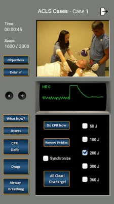 There are 12 cardiac arrest case scenarios included. The first three cover ventricular fibrillation, the next two are for pulseless ventricular tachycardia, another covers asystole, and the remainder of the cases cover tachycardia algorithms. This app is for training purposes only. Do not assume a real patient will behave exactly the same as any of the simulated patients, however, with regular practice you will always be ready to run a full cardiac resuscitation.