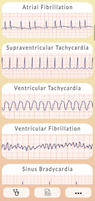 The app lets you compare the normal appearance of an ECG with all abnormalities, like Ventricular fibrillation, Atrial flutter, or heart block.