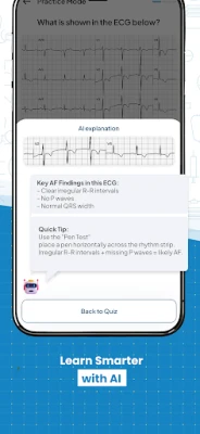 - AI-Powered Explanations: Get instant, detailed feedback from our AI to explain each ECG, helping you understand what you missed and why.
