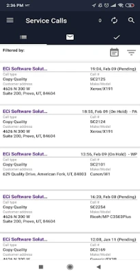 • Easily search calls by status, tech, customer, or equipment.