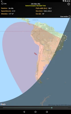 * Continuous tracking of your position and update of the contact times. Useful if you observe the eclipse on board a ship.