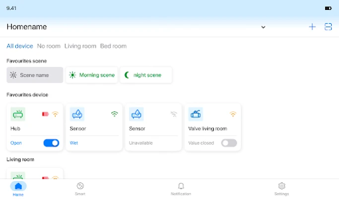• Navigate through your smart home setup with a clean and user-friendly design.