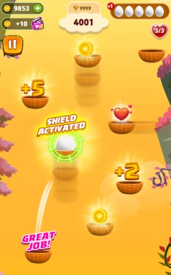 Some levels introduce a timer, adding an extra challenge. Toss the egg before time runs out and keep moving upward. Basket placements become trickier as you progress, featuring moving targets and dynamic speed variations.