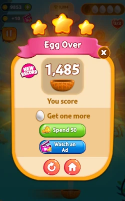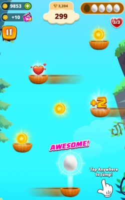 Tap the screen to toss the egg into the upper basket. Time your toss carefully to ensure a successful landing. Missing a basket costs you a turn, so stay sharp!