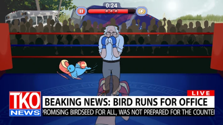Fight political parody figures including Jab Bush, Uncle Joe, and Birdie Sanders. Maybe you even have what it takes to reach the White House and take on the leader of the nation, Donald Thump! Each opponent presents a unique challenge with their own strengths and weaknesses.