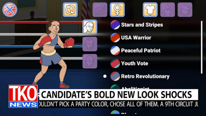 Create your own political party, lace up your boxing gloves, and punch out your way to the White House in Election Year Knockout! In a country torn apart by its political divide, the nation has resorted to boxing to settle its differences. Fight your way through hilarious political opponents before squaring off with president Donald Thump himself!