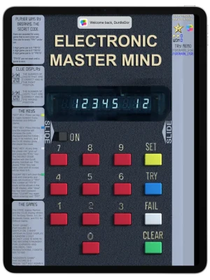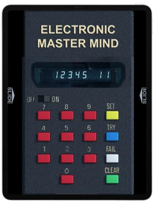 The 1970's electronic version of the classic board game. Instead of colour codes break the numeric code hidden within the computers memory. Player Wins by breaking the secret code.