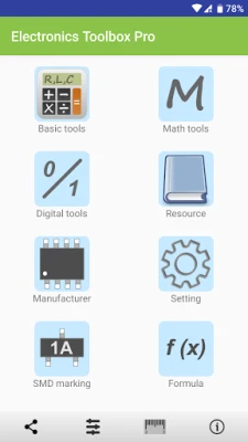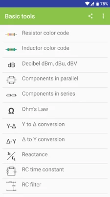 This app is a collection of basic electronic calculators. It is suitable for hobbyist, electronic engineers or professionals.