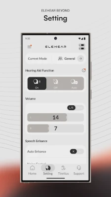 - Settings: Settings tab allows you to adjust various elements of Beyond’s sound quality to improve comfort, speech clarity, and sound preferences.