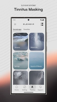 - Tinnitus:Tinnitus tab offers various maskers to help distract you from your tinnitus.S oundscape lets you craft personalized audio scenes by combining sounds from 16 environments and 4 noise types.