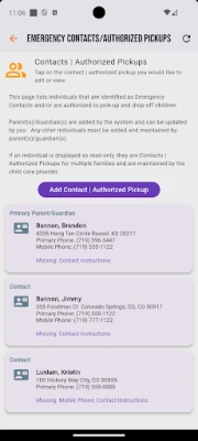 - Maintain Emergency Contact/Authorized Pickups