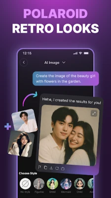 🎨 Create portraits in different styles like AI cartoon generator, anime, polaroid, or vintage photo effects.