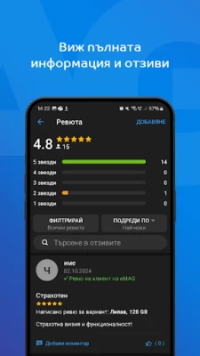 Същите услуги, повече ползи! По-лесно е да си спонтанен, да импровизираш или да изненадаш някого, като поръчаш каквото ти мине през главата, дори когато си мобилен, използвайки апликацията на eMAG.bg! Имаш бърз достъп до широка гама от електроника, електроуреди, джаджи, играчки, и детски артикули, книги, музика, филми и не на последно място дрехи, обувки и аксесоари.
