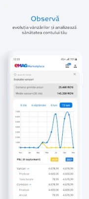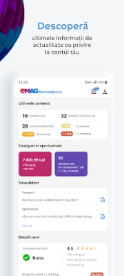 Daca esti seller eMAG Marketplace, aceasta aplicatie te va ajuta sa iti gestionezi usor contul, direct de pe telefonul mobil. Poti sa arunci o privire asupra contului, sau chiar sa pregatesti comenzi, mai simplu si mai rapid, oricand vei dori.