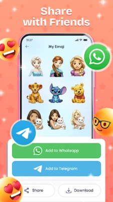 Create your own emoji and sticker designs, then save and share them for use in Telegram, WhatsApp, and other chat apps. Make every conversation more personal and entertaining.