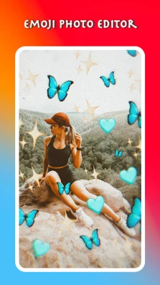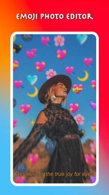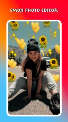 Emoji Photo Editor edit your photo to look cute girl with hundred of emoji background, heart crown effect, flower crown, dog face camera, cat stickers...