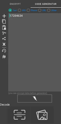 Scan and generate code : QR Code, Barcode, Code 39, Code 128, DataMatrix,... and support convert text to rows wizard, delimiters: |,#,; You can encrypts text before generate code