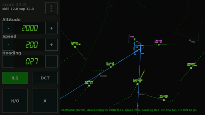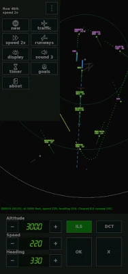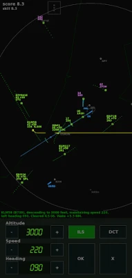 For each plane you lead to the runway, you gain skill points, and the more skill points, the more planes will enter the airspace. Departing aircraft determine their heading and speed themselves; they only require an instruction to climb to a higher altitude. When you make mistakes, the skill level goes down a bit. Some planes have an additional 'RD' tag; these planes should land on the secondary 'RD' airport. When landing at parallel runways, make sure both planes are 1000 feet vertically separated until both planes are on their localizer.