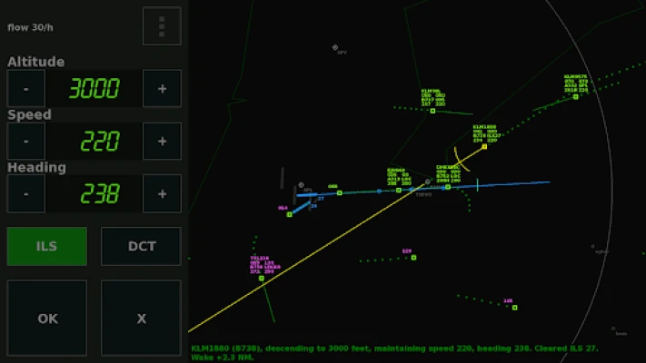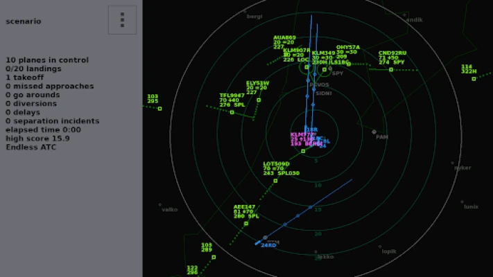 In this simulation game, you are the air traffic controller at the radar of a busy airport. The goal is to guide the airplanes safely towards the runway (using ILS approaches) to get a high score. If you make no errors, the number of planes you have to control gets greater and greater. How many flights at a time can you manage?