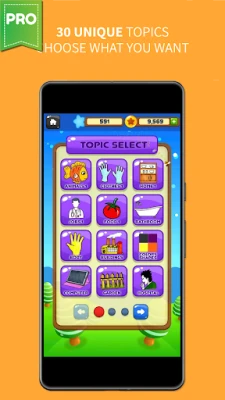 In this unique word game, all words were classified into 30 different topics. All words in this spelling bee game are illustrated by unique hand drawing images.