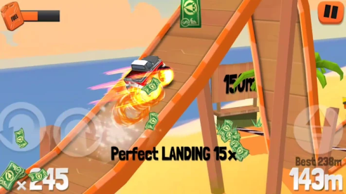 This is not a parking game! It’s a racing game! Fasten your seatbelt in this skill racer and race your Monster Truck as far as you can, collecting money, pulling off the biggest jumps, doing insane flips, avoiding gigantic bombs and make sure you don’t run out of fuel. If you do, you go back to the start and use the collected cash to upgrade your truck with new tyres, a bigger engine or a bigger tank and try again. You can improve your vehicle in five areas. The better your truck, the farther you will be able to go. And since this endless racer features an online leaderboard you will want to be on top of that, don’t you? Find out how good you are with the brand new free Endless Truck app.