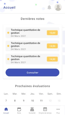 - Résultats sous forme de notes