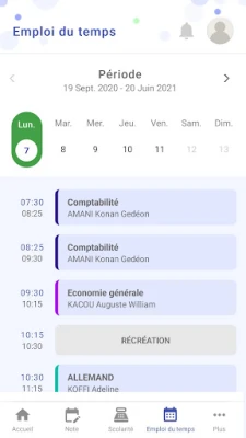 - Emploi du temps en temps réel,