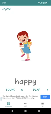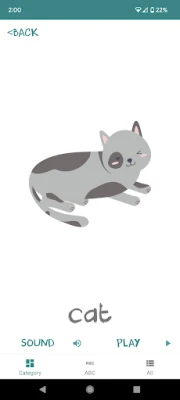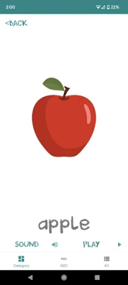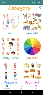 Our flashcards app cover the following interesting topics: ABC - A for apple, B for boy .. etc Animals Body parts Colours Feelings Food and Drinks Fruits Insects Numbers Sea animals Shapes Solar System