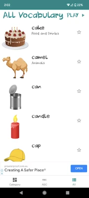 Click a image to listen the pronunciation of the vocabulary. You can also start a slide show by clicking the play button. Adjust font size and slide show duration in setting page.