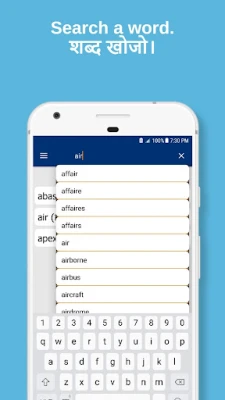 Completely Offline & FREE app containing both English > hindi and Hindi > English dictionary with 100000+ words. A simple easy to use the app.