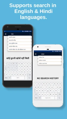No internet connection required to run this fast and free app after the initial download. Very useful when you have no net connection in the phone. No need anymore for a translator or friend for translation to Hindi / English. This Hindi to English Dictionary (हिन्दी अंग्रेजी शब्दकोश) a quick reference/guide with meanings available for almost all words. A lightweight app that works offline and gives faster results without any hassle.