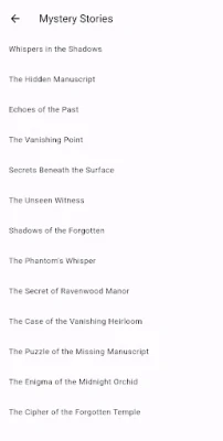 - Mystery: Unravel thrilling whodunits and intriguing puzzles.