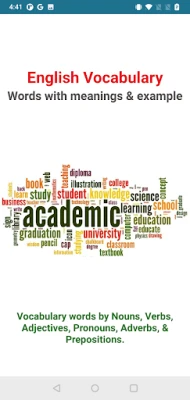 The English Vocabulary app is designed to help users improve their English vocabulary through a series of interactive activities and games. The app features thousands of words and phrases, all of which are carefully selected and categorized to ensure that users learn the most useful and relevant vocabulary for their needs. Whether you are preparing for a language exam, looking to improve your spoken or written English, or simply want to expand your vocabulary for personal enrichment, this app has something for everyone.