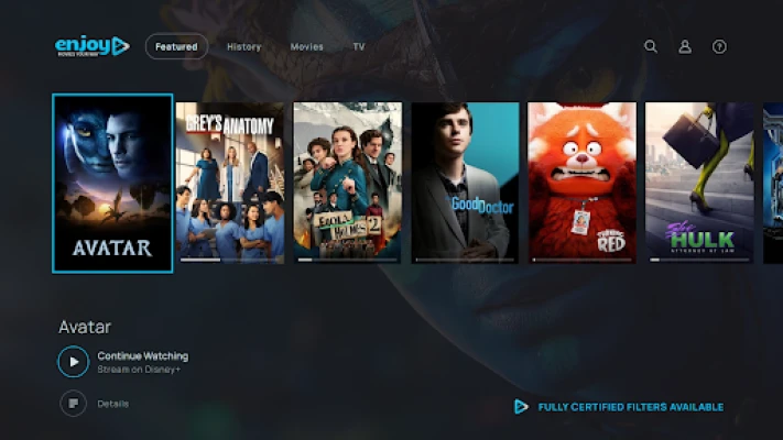 Enjoy is also a movie aggregator showing you all the places where a particular show is available to stream. Plus, there are more features like playback speed control, robust subtitle translations, and much more. Our content filtering features include language and graphic* content filtering for movies, shows, and even YouTube videos.