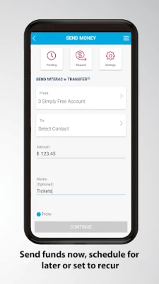 • Send and receive Interac e-Transfers® – import your contacts to make sending money easier