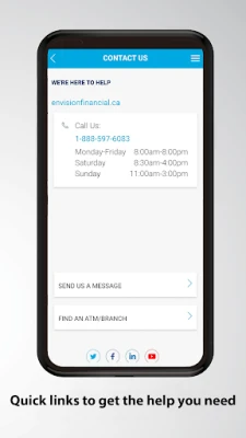 Use our Envision Financial Mobile App for all your banking needs, anytime, anywhere. Check your account information, transfer money, make purchases, deposit cheques, pay bills, make calculations, and more! Plus, you'll have quick access to our rates and contact information.