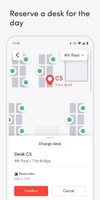 Know where to go and who to meet in the office. Find where your coworkers are sitting, book meeting rooms, see visitor details, and know where to pick up deliveries–all from the interactive workplace map.