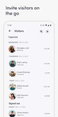 Invite guests to your office and keep track of who is scheduled to arrive and when, so you’re prepared for every visit. Receive a notification when your visitor arrives so your guest is never kept waiting.