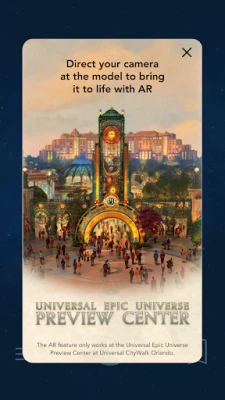 The AR feature only works at the Universal Epic Universe Preview Center at Universal CityWalk Orlando. Artistic enhancements have been made to the visual experience which may differ from the in-park experience. Free download. Data and other charges may apply; check with your mobile network provider for any terms, conditions and additional details. If this mobile application is not compatible with your device, you are still able to enjoy the Epic Universe Preview Center model during your visit.